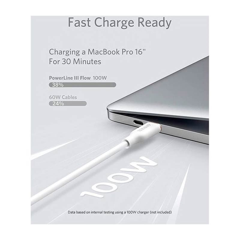 Anker Powerline III Flow USB-C to USB-C 100W Cable 1.8M White